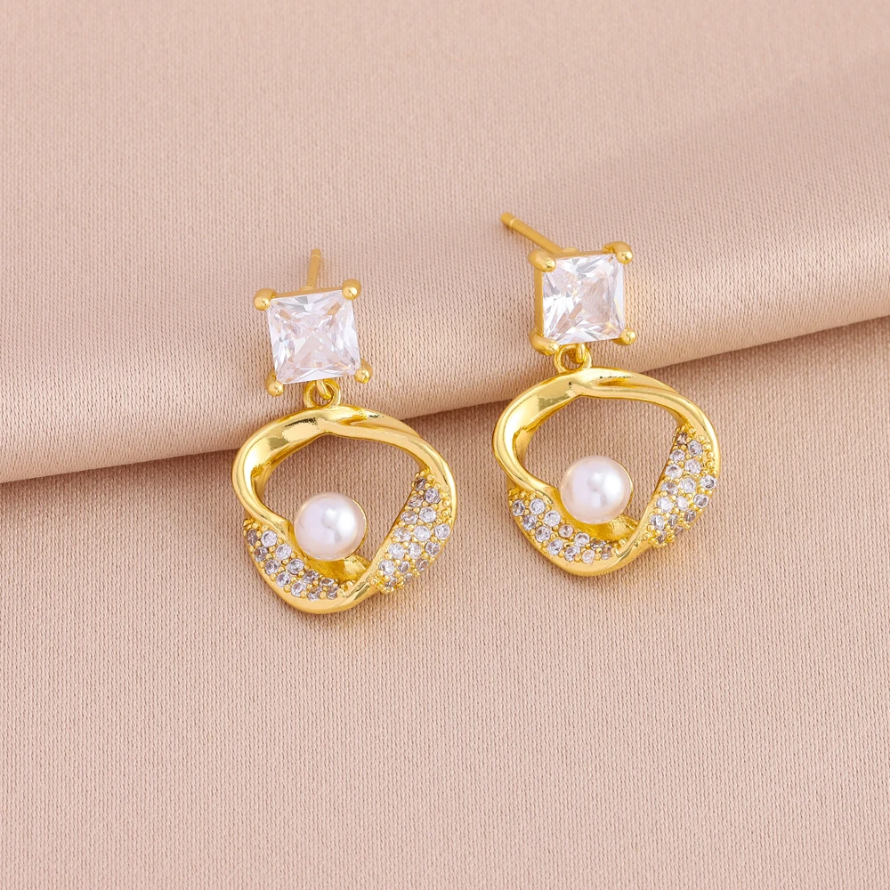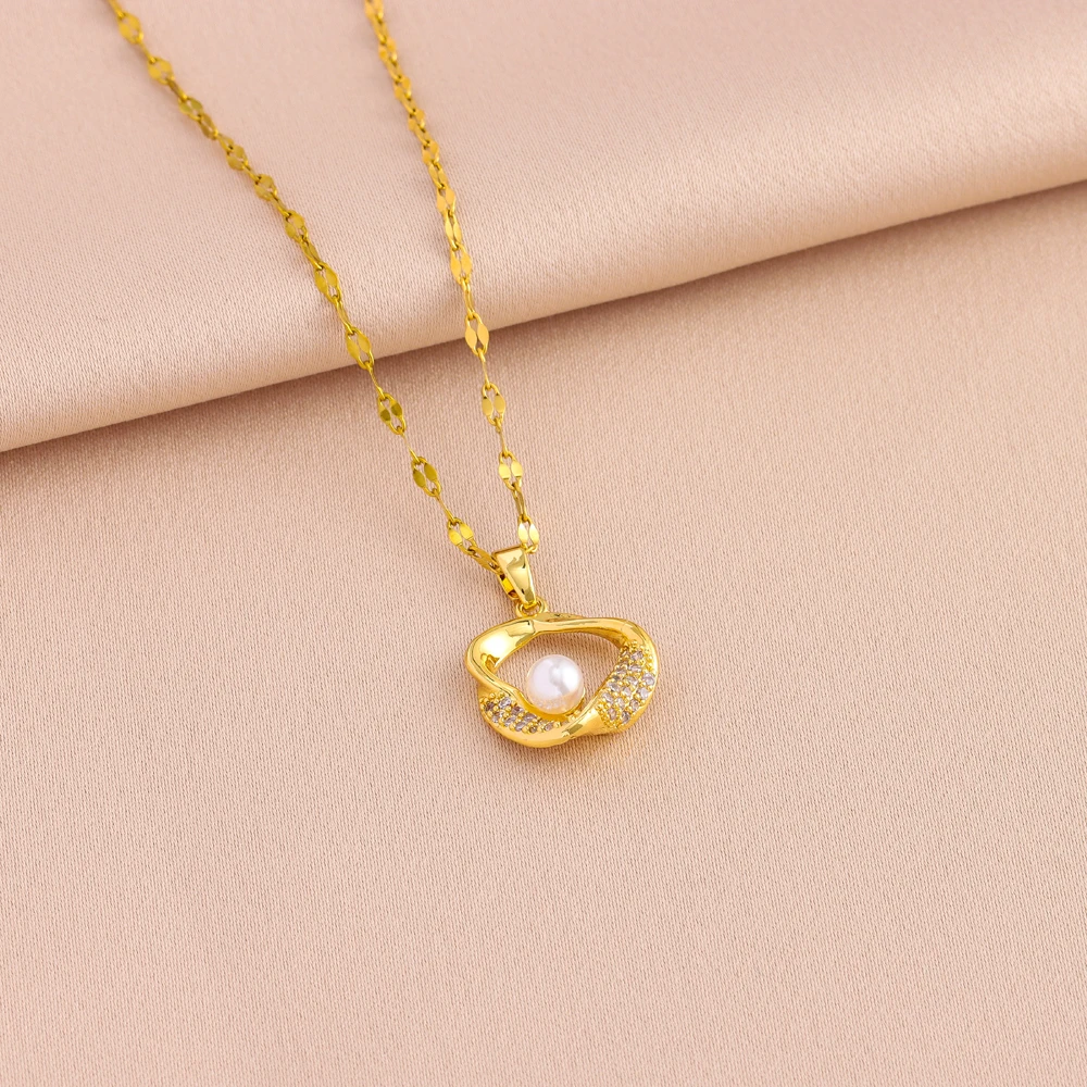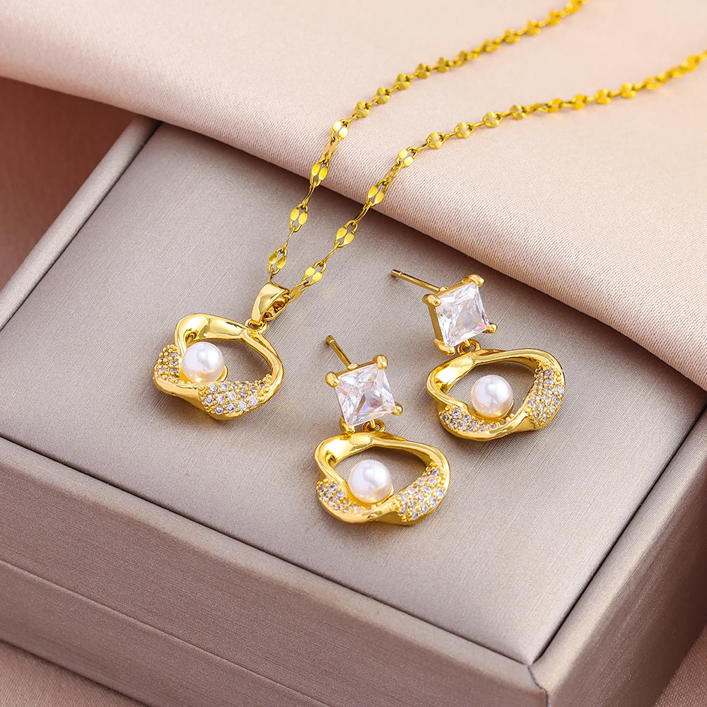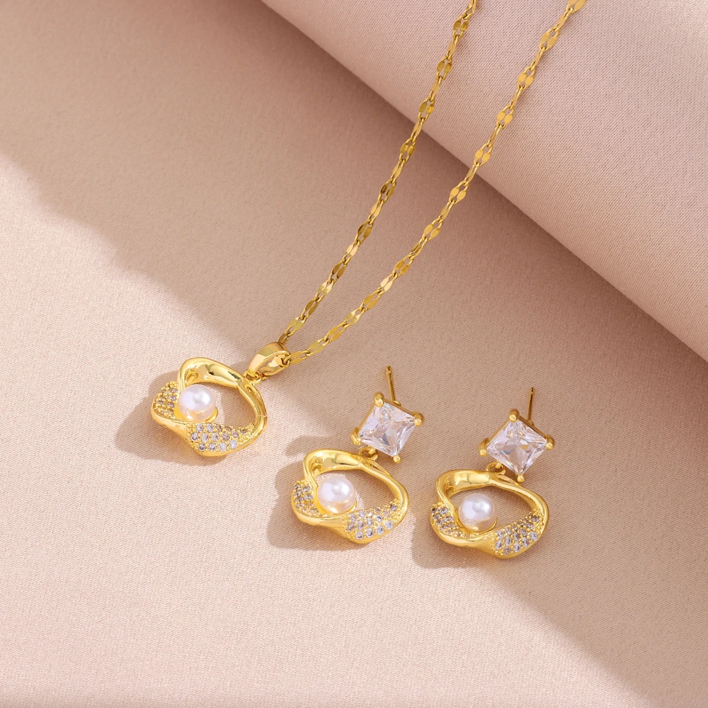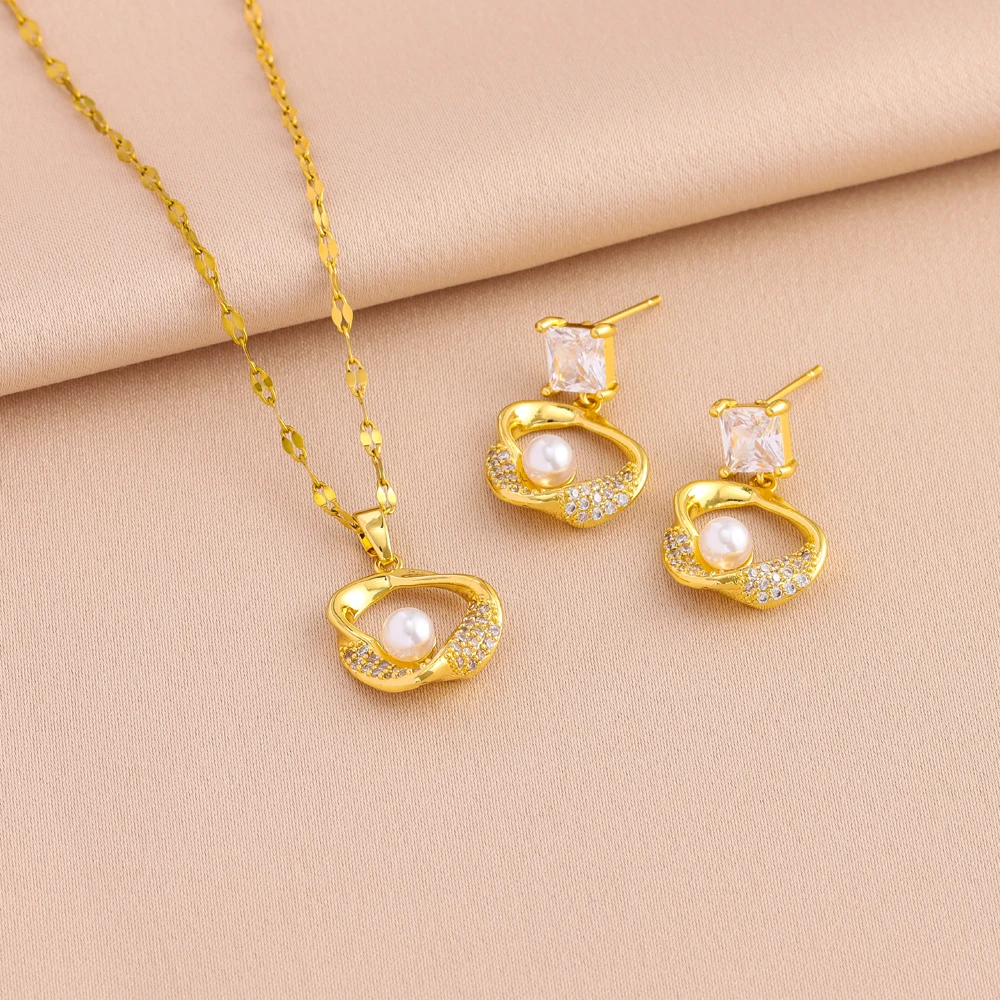 Schmuckset für Damen aus 18-karätig vergoldetem Edelstahl, Perlenketten im Retro-Stil, Ohrringe, Damenmode, Großhandel, Neu